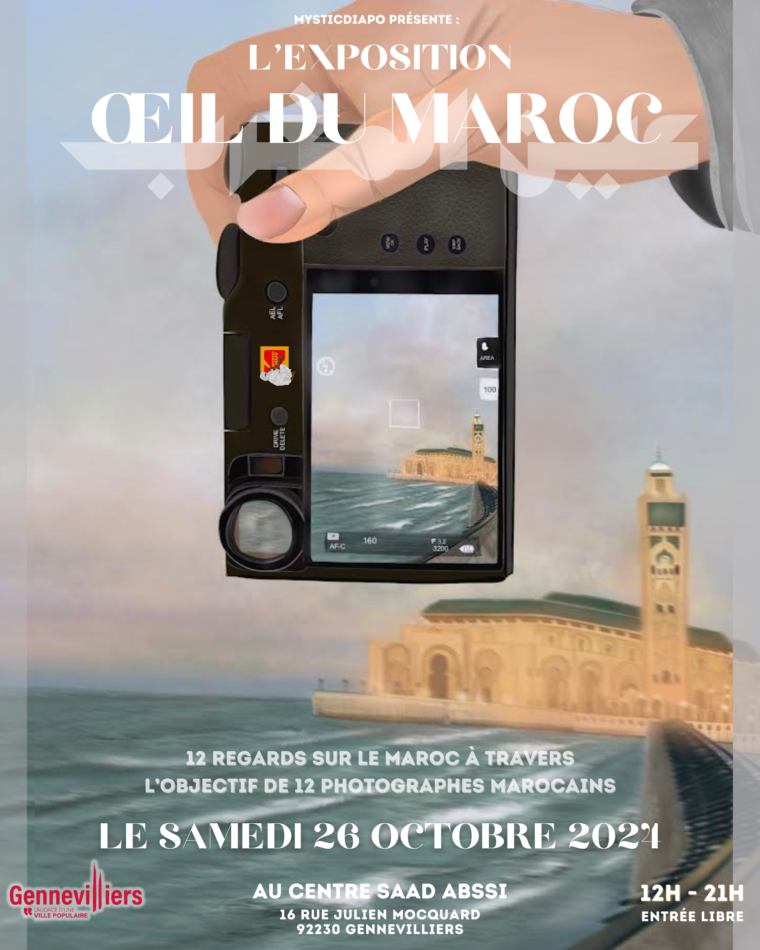 « Oeil du Maroc ». Affiche réalisée pour une exposition d’oeuvres photographiques par des artistes marocains, . 2024.