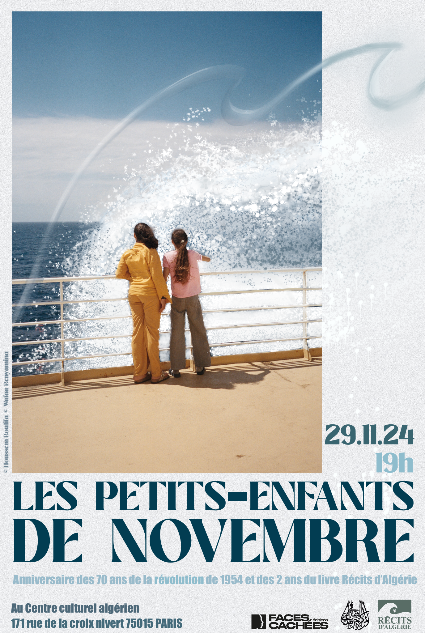 L’Affiche reprend une oeuvre de Houssem Boulifa inspirant la transmission et la dimension générationnelle du projet. 2024.