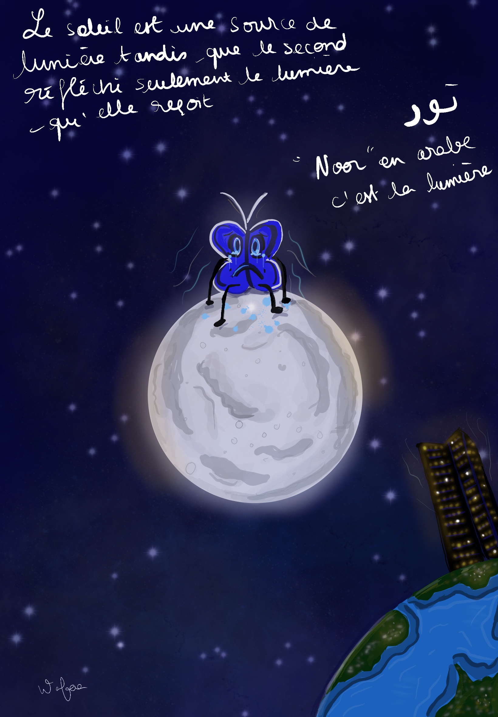 Le papillon Noor traverse mes illustrations comme un messager lumineux, porteur d’émotions et de métamorphoses. Il symbolise la quête d’évasion, la résilience et la délicatesse du monde intérieur. Ses ailes légères, tantôt oniriques, tantôt vibrantes de nostalgie, invitent à un voyage entre réel et imaginaire. À travers lui, je capture des fragments d’histoires, des instants suspendus où la mémoire et le présent se croisent, offrant à chacun la liberté d’y projeter ses propres émotions.